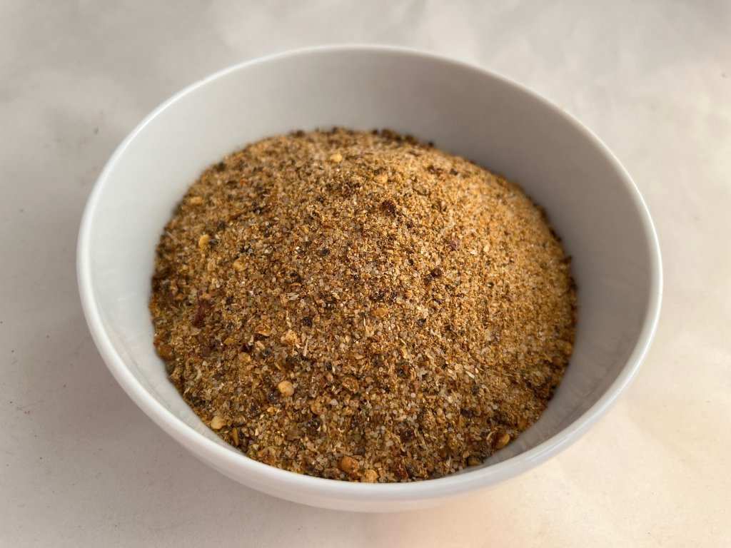 SLOŽENÍ: Sůl 44%, kukuřičná krupice, cibule, paprika sladká, cukr, pepř černý, paprikové floky červené, petrželová nať, chilli papriky.