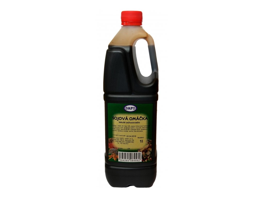 SLOŽENÍ: Pitná voda, sojový bálkovinný hydrolyzát (16%), jedlá sůl max. 16%, cukr, látka zvýrazňující chuť a vůni: glutaman sodný; bílé víno, barvivo: amoniak sulfitový karamel; ocet kvasný lihový, glukózo-fruktózový sirup, povidla: (švestky, jablka cukr); rajčatový protlak, aromata, směs koření.